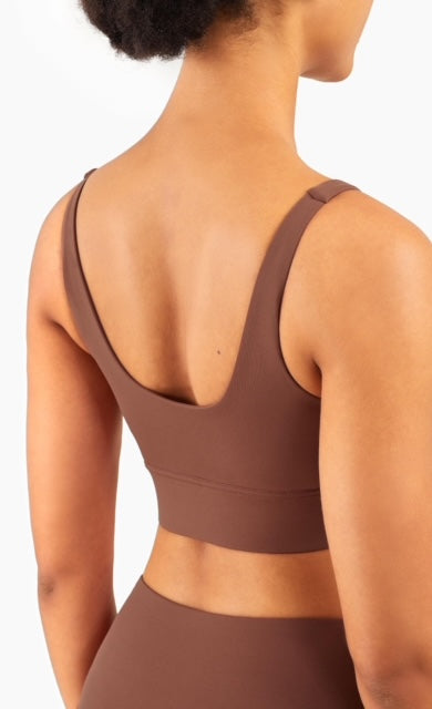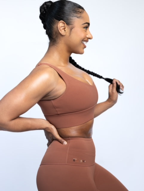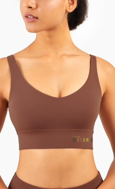 The Melanin+ Sports bra is crafted from 80% nylon and 20% spandex, offers functionality and style. The triangular back design of the inner wear beautifully accentuates the back muscles while ensuring a comfortable fit. Its high elasticity bottom hem hugs the body, providing support and comfort.