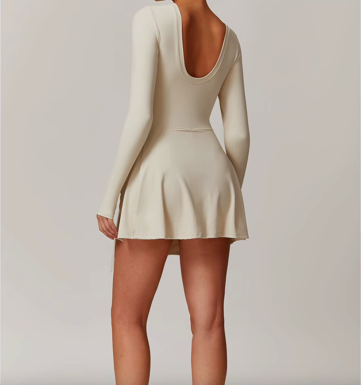 The long sleeve, one piece, with lined shorts design adds a chic, sporty touch, offering full-arm protection during indoor or outdoor play while maintaining breathability. The sleek, flattering fit is perfect for a competitive edge or casual wear while ensuring a snug yet comfortable fit.